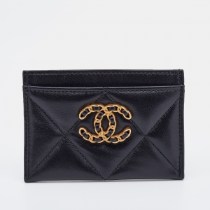 Chanel Black Quilted Leather Chanel 19 Card Holder