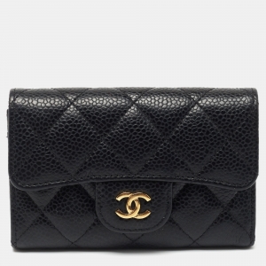 Chanel Black Quilted Caviar Leather CC Classic Card Case