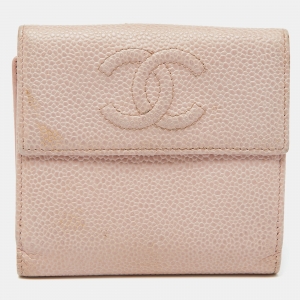 Chanel Pink CC Chevron Iridescent Caviar Zip Around Wallet