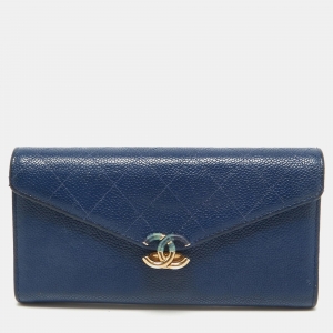 Chanel Blue Quilted Lambskin Leather CC Quilted Bifold Wallet