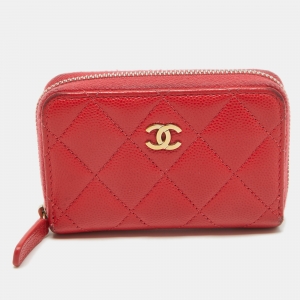 Chanel Red CC Caviar Wallet On Chain