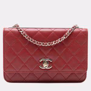 Chanel Red CC Quilted Lambskin Wallet on Chain