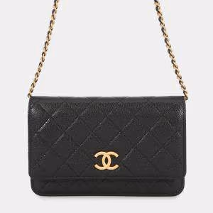 Chanel Black Caviar Leather Caviar Chain Card Holder