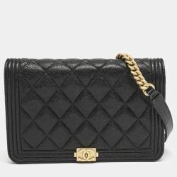Chanel Black Quilted Caviar Leather Boy Wallet On Chain