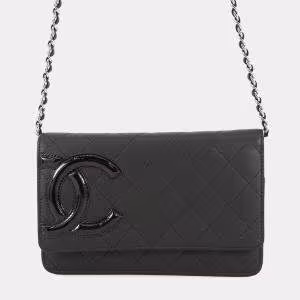 Chanel Black Quilted Patent Classic Wallet On Chain