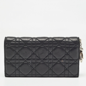 Dior Black Cannage Quilted Leather Lady Dior Compact French Wallet