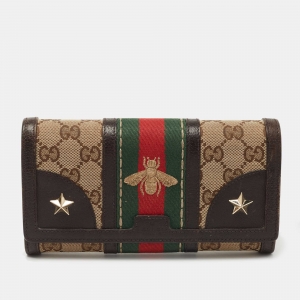 Gucci Gold/Beige GG Canvas and Leather Flap Continental Wallet