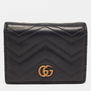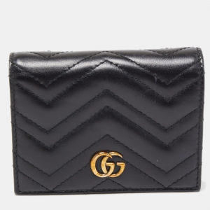 Gucci Black Matelassé Leather GG Marmont Card Case