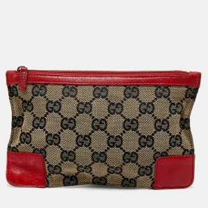 Gucci Brown/Beige GG Canvas Leather Zip Around Compact Wallet