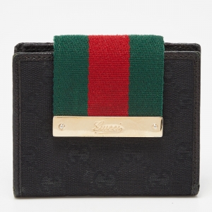 Gucci Black GG Canvas and Leather Abbey Compact Wallet