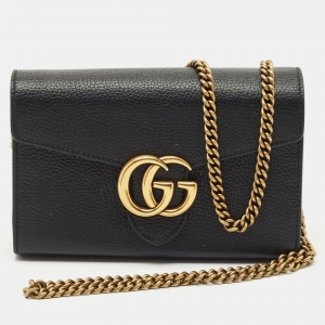 Gucci Black Leather GG Marmont Pouch