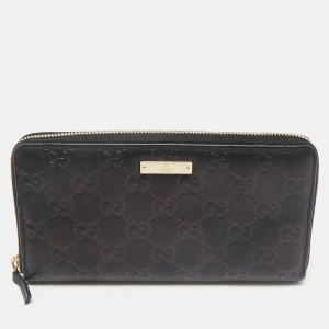 Gucci Brown Guccissima Leather Bamboo Zippy Organizer Wallet