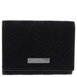 Gucci Black GG Canvas and Leather Flap Card Holder