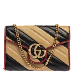 Gucci Black/Red Diagonal Quilt Leather GG Marmont Torchon Wallet on Chain