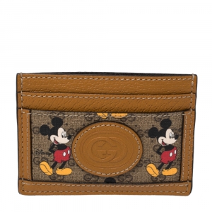 Gucci x Disney Tan Leather and GG Supreme Canvas Mickey Mouse Card Holder