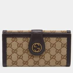Gucci Beige/Brown GG Canvas And Leather Bamboo Zip Around Wallet