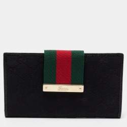 Gucci Black GG Canvas And Leather Jackie Long Wallet