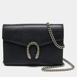 Gucci Black Matelassé Leather GG Marmont Wallet On Chain