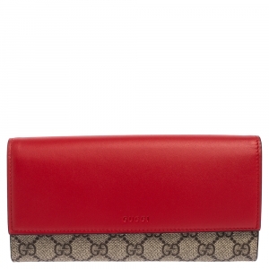 Gucci Beige GG Supreme Canvas Web Bifold Continental Wallet