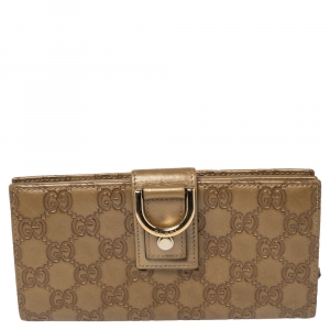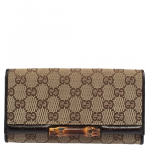 Gucci Beige/Gold GG Canvas and Leather Bamboo Tassel Bella Continental Wallet