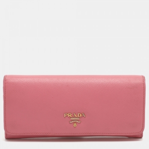 Prada Pink Saffiano Leather Trifold Continental Wallet
