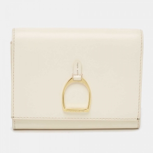Ralph Lauren White Leather Stirrup Trifold Wallet