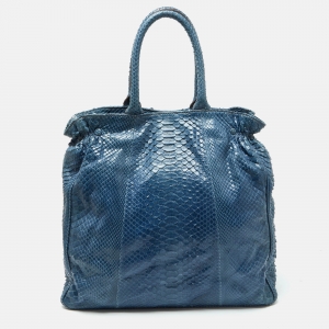 Zagliani Blue Python Shopper Tote