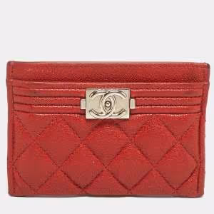 Chanel Boy Red Caviar Quilted Leather Card Holder