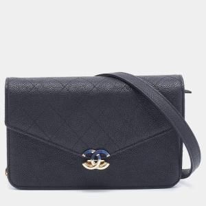 Chanel Blue Quilted Caviar Leather CC Timeless Wallet On Chain