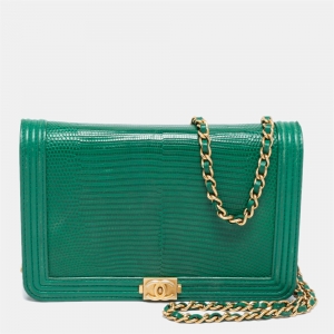 Chanel Green Lizard and Leather Boy Wallet on Chain