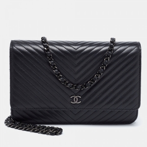 Chanel Black Chevron Leather Reissue 2.55 Wallet On Chain