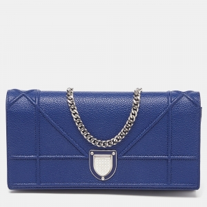 Dior Blue Matte Cannage Leather Wallet on Chain