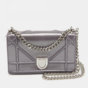 Dior Grey Shimmer Suede Diorama Wallet on Chain