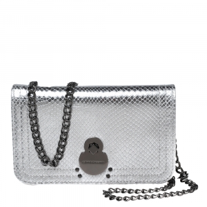 Longchamp Silver Snakeskin Embossed Leather Cavalcade Wallet on Chain