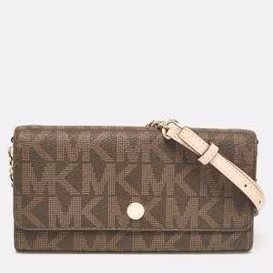 Michael Kors Brown Signature Coated Canvas and Leather Envelope Wallet on Strap