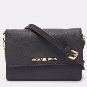 Michael Kors Black Leather Flap Wallet On Chain