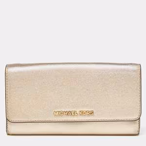 Michael Kors Gold Leather Jet Set Travel Wallet On Chain