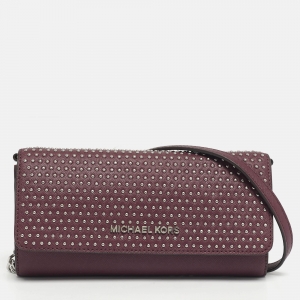 Michael Kors Plum Leather Studded Flap Wallet On Chain