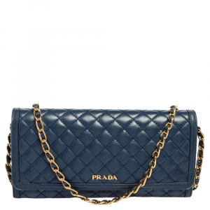 Prada Blue Saffiano Lux Leather Flap Wallet On Chain