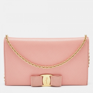 Salvatore Ferragamo Peach Leather Miss Vara Wallet on chain