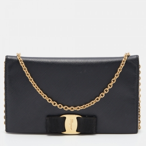 Salvatore Ferragamo Black Leather Vara Bow Wallet on Chain