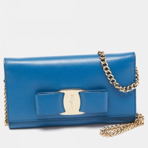 Salvatore Ferragamo Blue Leather Miss Vara Wallet On Chain