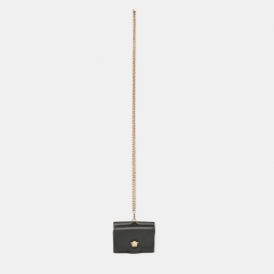 Versace Black Leather Mini Medusa Trifold Wallet On Chain