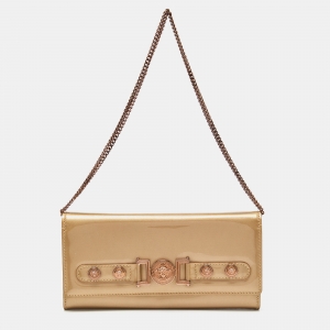 Versace Gold Patent Leather Medusa Wallet On Chain