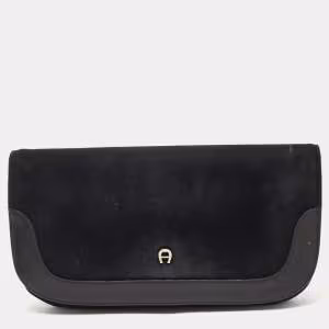 Aigner Black Suede And Leather Logo Flap Clutch
