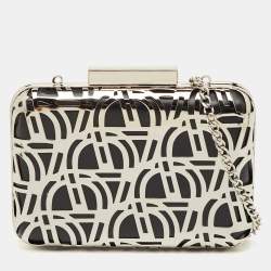 Aigner Tesora Black Leather and Metal Cut-Out Minaudiere Chain Clutch