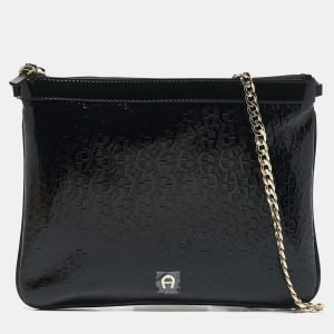 Aigner Black Signature Embossed Patent Leather Large Candy Chain Pouch