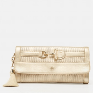 Aigner Gold Embossed Leather Cavallina Flap Clutch