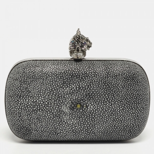Alexander McQueen Silver Python Skull Box Clutch