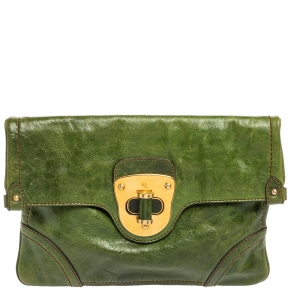 Alexander McQueen Green Leather De Manta Clutch